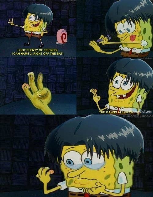 Subreddit dedicated to any meme where the picture is related to Spongebob. Look to these best SpongeBob memes and funniest jokes of all. SpongeBob Old Man Jenkins Listen to Music Sticker. Easily add text to images or memes. Aug 15 2020 - Explore liat sos board Spongebob followed by 105 people on Pinterest. Click to see all Spongebob meme templates. Meme Generator Spongebob The gangs all here Spongebob The gangs all here This is the generator that preloads the Spongebob The gangs all here meme template.