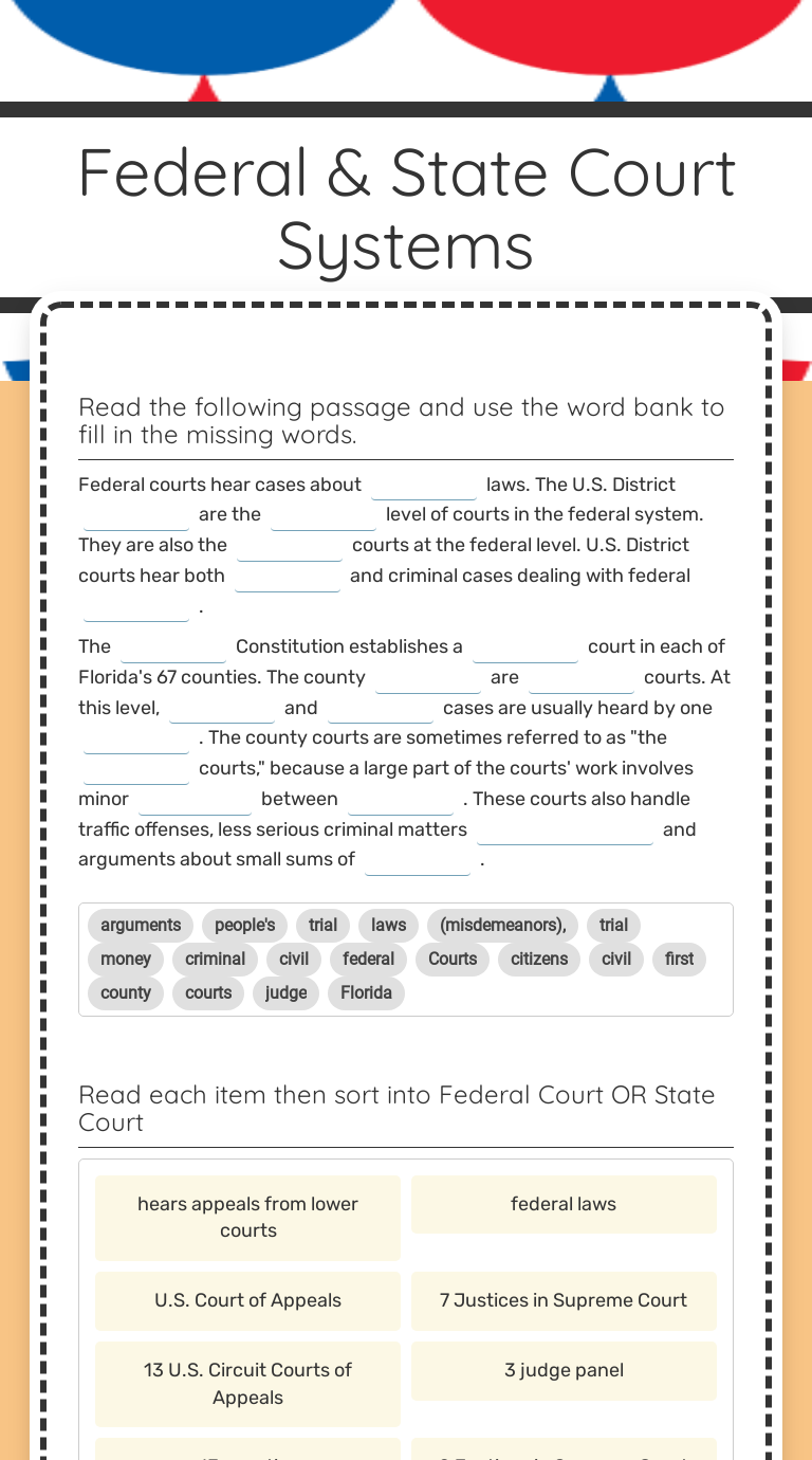 The vast majority of legal cases are heard and often resolved at the state level. Diy Federal court system worksheet. Congress Creates the Federal Court System Center for Legislative Archives Worksheet 5 Answer Key.